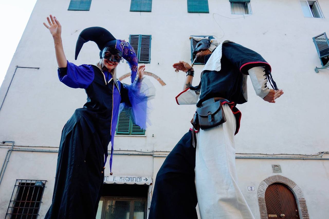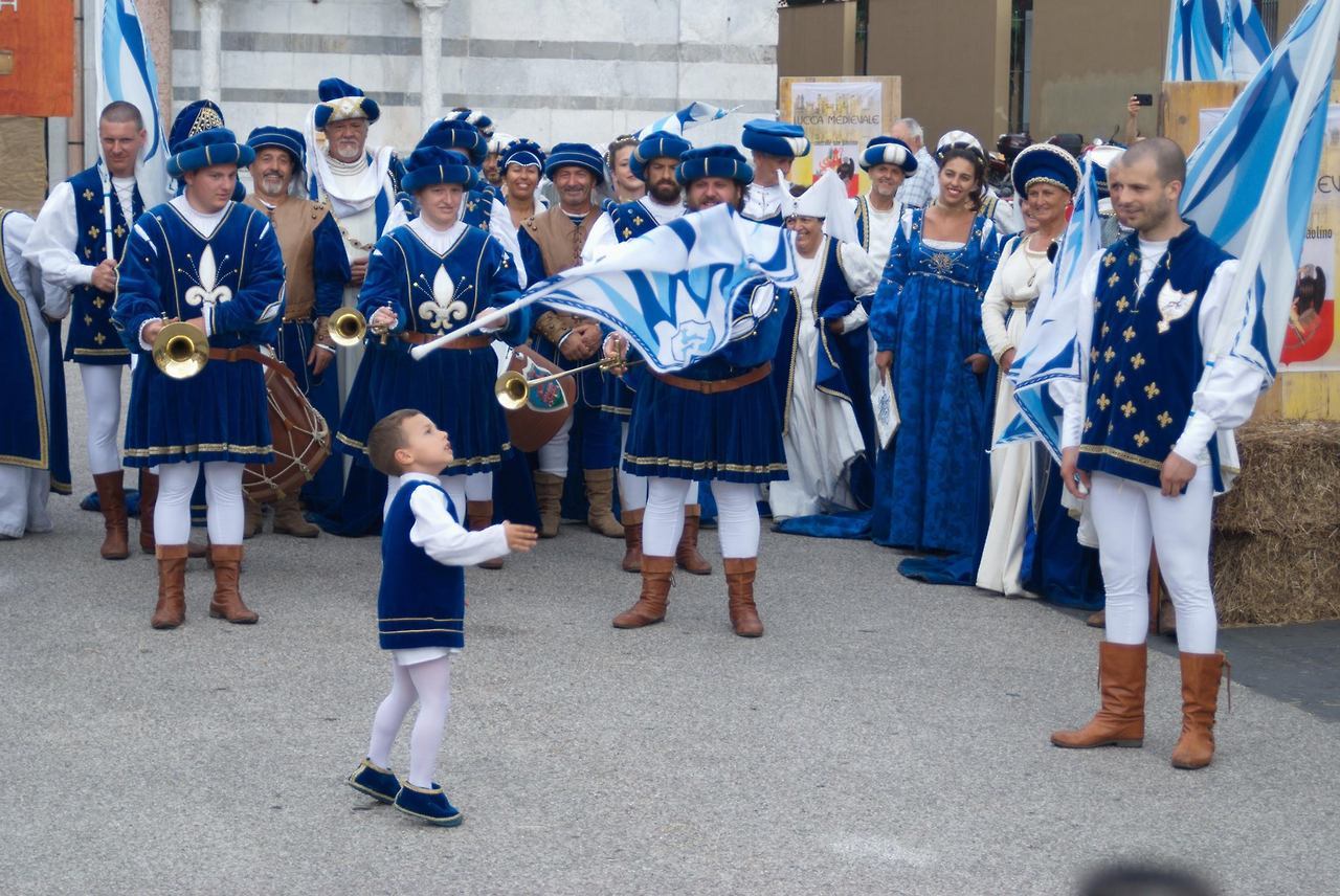 Bella la scenografia di Piazza San Francesco con il suo villaggio medievale, dove si sono potuti ammirare gli antichi giochi in legno per la gioia dei più piccoli, i falconieri con le esibizioni di rapaci che hanno incantato il pubblico, gli antichi mestieri (il ceraio – il rilegatore) accanto ai banchi con manufatti in legno, in pietra o in ambra, i numerosi spettacoli dalle Ocarine Gaggle, ai trampolieri, e i numerosi gruppi storici che sono convenuti dalla Toscana (Pietrasanta e Volterra).